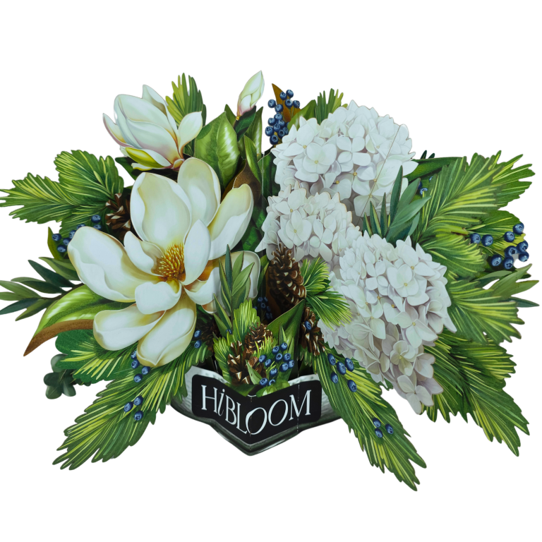 HIBLOOM – 12″ Winter Vase Pop Up Card | Life-Sized 3D Forever Flower Bouquet | Christmas & Holiday Greeting Card with Envelope